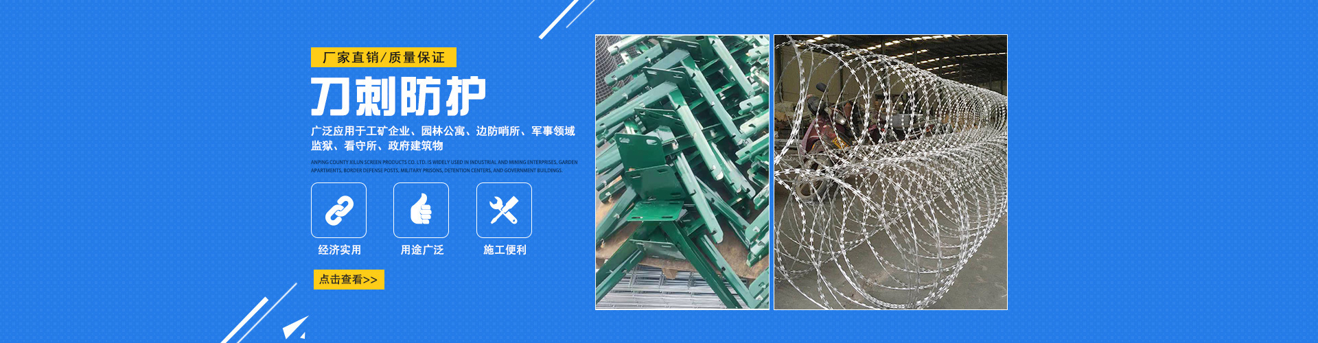 刀片刺繩由全自動化的刺繩機擰編而成,民間俗稱鐵蒺藜。